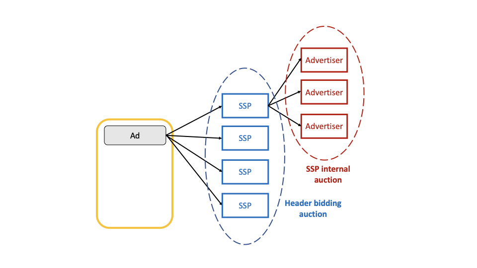 Before header-bidding, a SSP would run a second-price auction with an