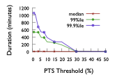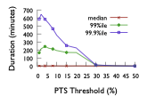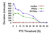 in both systems for $`PTS_{th} \le 20\%`$ is greater than a minute.