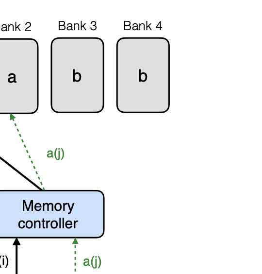 data elements $`\mathbf{a}`$ and $`\mathbf{b}`$ and partition the banks