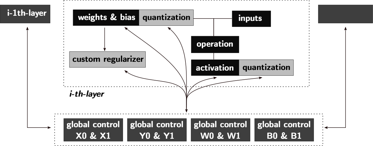 perform the HW-aware training, elements controlling the quantization,