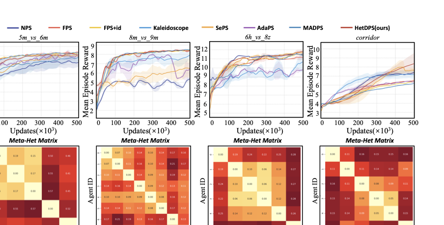 ā¢Ā Utilizing Heterogeneity: We develop a multi-agent dynamic parameter-sharing algorithm based on heterogeneity quantification, which offers better interpretability and fewer task-specific hyperparameters compared to other related parameter-sharing methods.