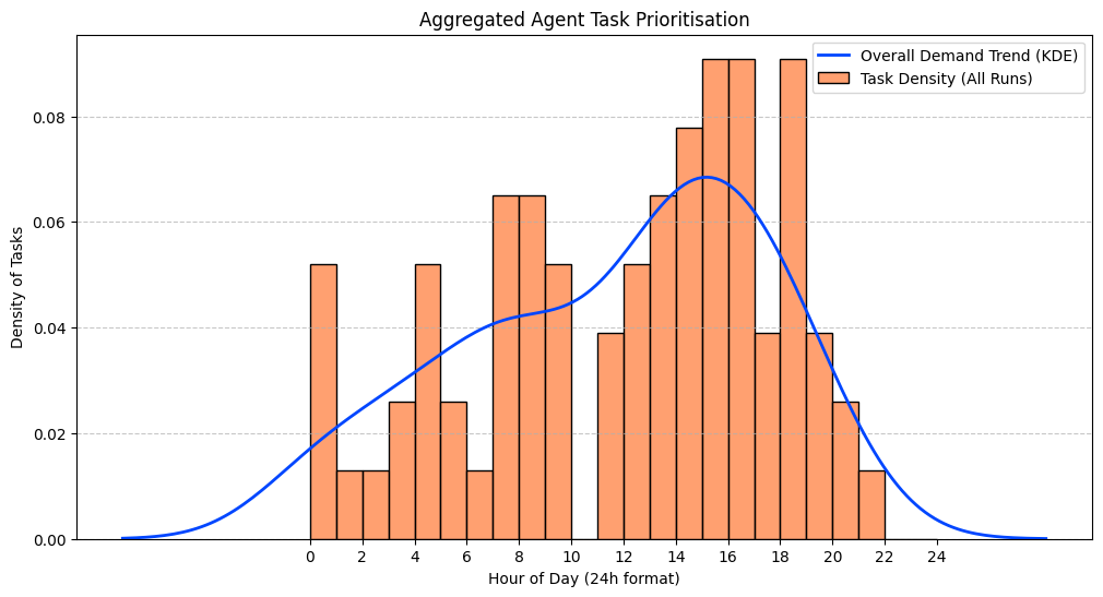 This proactive behaviour is first evident when examining the results from each seeded run, as shown in FigureĀ 4. While the exact distribution of tasks varies slightly between seeds, a consistent pattern emerges: in all runs, the agent identifies the need for intervention during off-peak hours, particularly in the early morning and afternoon. This consistency across independent experiments demonstrates that the proactive strategy is a robust and replicable feature of the learned policy, not an incidental outcome.