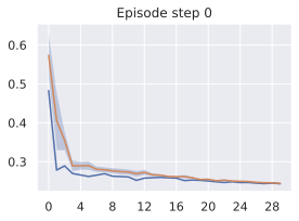 Step the first $`m`$ actions of $`\mu^J`$. where $`m \leq H`$ is a planning hyperparameter in the environment. If we are in MPC mode, the process then repeats at the next time step with the new context observation.