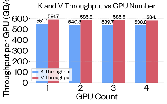 On both workstation- and cluster-GPUs, our method markedly boosts matrixāvector throughput: on A100 shown in figureĀ 27, +45.1% for K and +193.5% for V; on RTX Pro 6000 shown in figureĀ 30, +106.2% for K and +149.8% for V, with kernel time reduced accordingly.