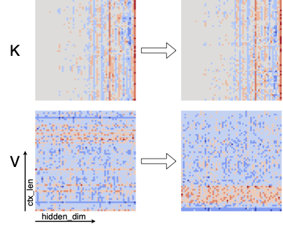 To address these challenges, recent studies mainly leverage three approaches to reduce KV cache size: quantization, pruning, and GPU-CPU migration. Quantization-based methodsĀ , such as KIVI, aim to carefully design quantization strategies that minimize the impact on model accuracy. However, these techniques often achieve modest compression ratios unless combined with additional encoding, which introduces overhead and limits their applicability in latency-sensitive LLM inference. Pruning-based methodsĀ , such as Q-Hitter, selectively discard KV pairs that are predicted to be unimportant for future decoding. While effective in some cases, these methods suffer from unpredictable attention callbacks, leading to either costly KV recomputation or substantial accuracy degradation. GPU-CPU migration is a traditional approach for handling memory overflows, offloading KV cache data to CPU memoryĀ . Although this mitigates GPU memory pressure, it significantly degrades inference performance due to data transfer latency and complex scheduling overhead.