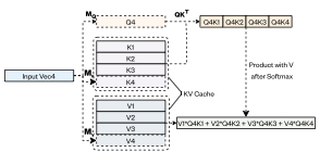 KV cache participates in two stages during inferenceĀ . Prefill Stage: Initial prompt processing generates the initial KV cache (FigureĀ 1). Decode Stage: Auto-regressive token generation where new KV vectors are appended to the cache and the entire cache is used for attention computation via matrix-vector multiplications (FigureĀ 3).