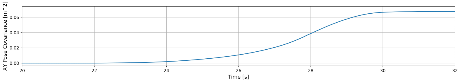 It is also possible to create scenarios that replicate the faults that occurred in the real world. An example is the scenario that has been developed to reproduce the A2RL race event on April 27, 2024, at the Yas Marina Formula 1 circuit. Unimoreās car experienced a severe delay in IMUs and GPS entering Turn 5. Although GPS are not used in the Yas Marina Circuit (due to their poor quality signal), IMUs are essential. A 400 ms drop of the IMUs measurements made the LIO estimation go off track, as shown in Fig. 6. The software stack detected it and was able to ban that source, relying only on the model to stop safely. Thanks to the simulation scenario, it is possible to replicate the problem and test what would have happened if the car hadnāt stopped. In this case, the car would have been able to continue without LIO for a while, deviating only slightly from the ground truth, until the localization covariance exceeded the safety threshold of $`0.03\ \mathrm{m}^2`$, leading to a safety stop, as shown in Fig 9. Therefore, if the slam could re-initialize before the covariance hit the safety threshold, it would have been possible to continue the race without stopping. Testing these types of conditions in simulation is essential to understand the software stackās limits. This is fundamental both to improve it adding new features and to assess the risks of increasing the safety thresholds for the race event, in order to find the best trade-off between losing a race for an unnecessary safety stop and risking a crash.