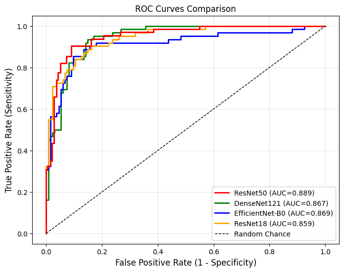 | EfficientNet-B0 | 88.3 (85.9ā ±ā 2.2) | 0.869 (0.839ā ±ā 0.027) | 0.862 (0.836ā ±ā 0.025) | 0.871 (0.837ā ±ā 0.029) | 0.866 (0.836ā ±ā 0.027) |