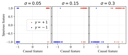 Consider binary classification with label $`y \in \{-1, +1\}`$. The features are $`x = (x_\text{core}, x_\text{spu}, x_\text{noise}) \in \mathbb{R}^d`$, where: