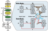 The Read Mode uses the current queries $`Q`$ (projected from input $`X`$) to retrieve the context encoded during the Write Mode in the combined Hebbian weight $`H = H_{neuron} + H_{astro}`$. This retrieval is modulated by an astrocyte-inspired feedback mechanism operating within the network structure. First, an interaction strength $`C \in \mathbb{R}^{N \times 1}`$ between the currently active queries $`\phi(Q)`$ (hidden layer activations from queries) and the cumulative presynaptic state $`g`$ (astrocyte state abstraction) is calculated as $`C = \phi(Q) g^T`$. This represents the calcium response evoked by the presynaptic action potential ($`Q`$). Inspired by biological modulation (e.g., saturation) , a feedback factor $`P`$ is derived, typically modeled as inversely related to this interaction strength, i.e., $`P = 1/C`$. This represents the presynaptic plasticity decoded by the query ($`Q`$). The combined Hebbian weight matrix $`H`$ is then modulated element-wise (Hadamard product $`\odot`$) by this feedback factor $`P`$. The final weight $`H \odot P`$ defines the synaptic weight between the hidden ($`h`$) and output layer ($`L`$). Activated queries $`\phi(Q)`$ retrieve the relevant context by multiplying this modulated weight matrix ($`H \odot P`$). Finally, a standard residual connection adds the original input $`X`$ to compute the Final Attention Output ($`L`$), which represents the final activation of the output layer for this attention block (further details are provided in Appendix 7 on how $`L`$ maps to self-attention in transformer):