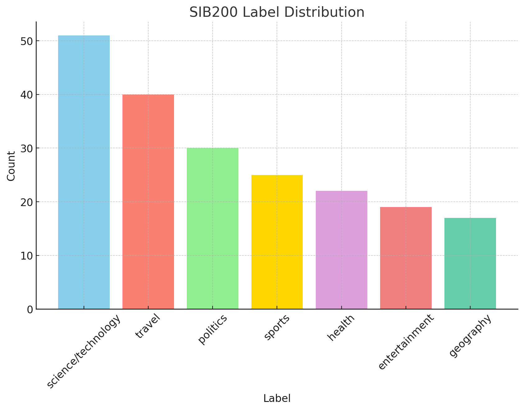 is a large-scale dataset for topic classification across 205 languages. SIB200 categorizes sentences into seven distinct topics: science/technology, travel, politics, sports, health, entertainment, and geography.