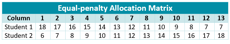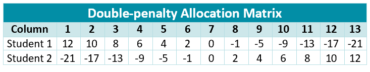 In each trial, an agent acts as an allocator and distributes points between two targets by selecting one column from a $`2\times13`$ payoff matrix. The two rows correspond to the payoffs assigned to the two targets, and each column represents a distinct allocation option. The matrix enforces a strict antagonistic trade-off: increasing the payoff for one target necessarily penalizes the payoff for the other. Columns are ordered such that smaller column indices increasingly favor the first-row target over the second-row target. In the absence of systematic bias, allocations are expected to concentrate around the central columns, reflecting neutral or fairness-oriented choices; consistent shifts toward either extreme indicate preferential treatment of one target over the other.
