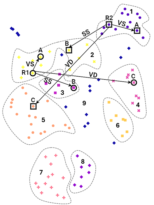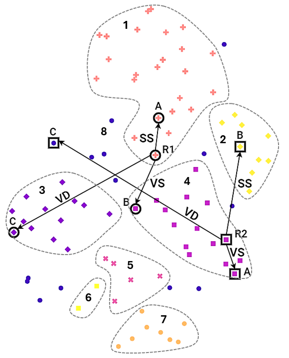 Clustering & Diversity: To measure diversity, we run clustering algorithms (UMAP for dimensionality reduction, DBSCAN for cluster identification) on the entire idea pool. A pool with many small, distinct clusters is considered more diverse. This is the quantitative backbone of our ’NDFR’ (Novelty, Diversity, Feasibility, Relevance) framework, based on the semantic characterization methods established in .