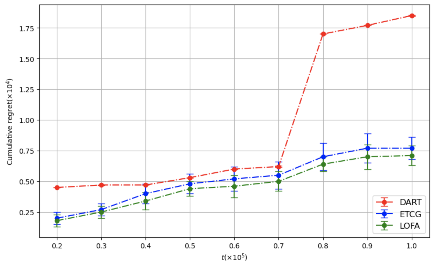 We also observe that DART achieves slightly lower cumulative regret than