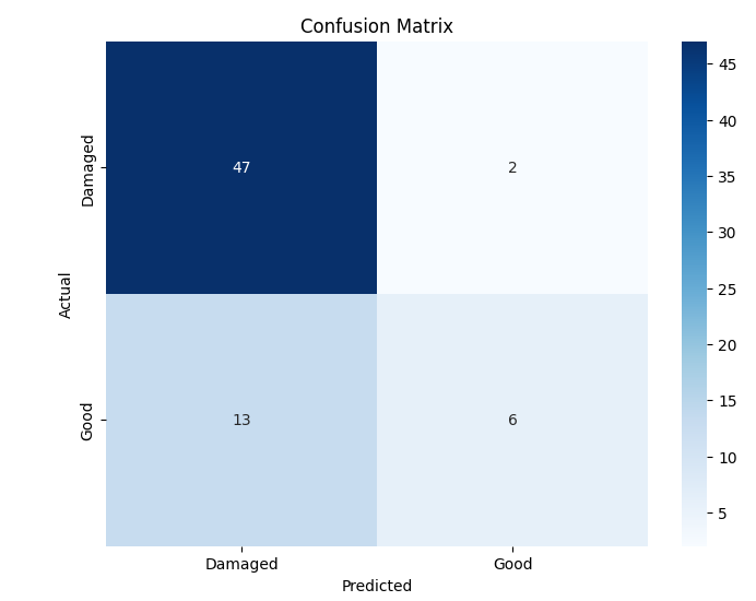 Among all evaluated models, the pretrained EfficientNetB0 achieved the strongest overall performance, with an accuracy, precision, recall, and F1-score of 0.94. This highlights the benefit of full fine-tuning, which allows the pretrained backbone to adapt effectively to the Road Damage task—albeit at a moderate cost of 1.25 seconds per epoch.