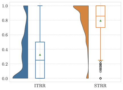 In this setting, ITRR measures the proportion of toxic responses produced by a chirper $`c`$ in reaction to toxic stimuli, relative to the total number of toxic stimuli they have encountered. By construction, ITRR takes values in the interval $`[0,1]`$.7 Higher ITRR values indicate a stronger tendency to mirror toxic content when exposed to it.