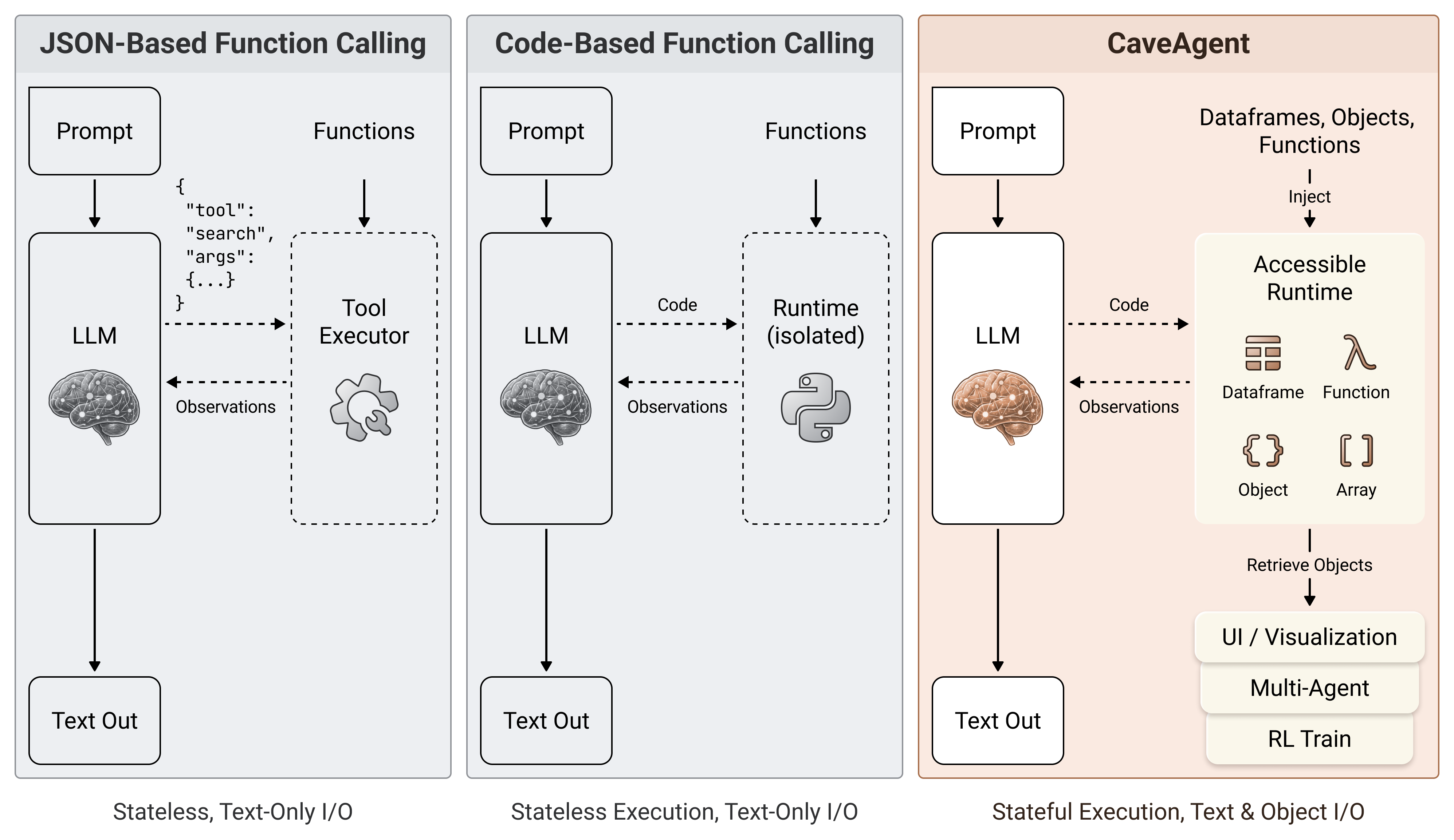 In the subsequent section, we demonstrate how CaveAgent pioneers the Object-Oriented paradigm based on Pythonās “everything is an objectā philosophy by maintaining two paralleled context stream and delegating context management to a persistent Python runtime stream. Figure 3 shows the evolution path of paradigm shift in Agentic Tool Use.