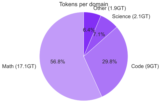 The most effective training mixture was math-dominant with moderate inclusion of code and science data. This configuration outperformed more balanced or code-centric mixtures, suggesting that mathematical reasoning skills transfer more effectively to other domains than vice versa.