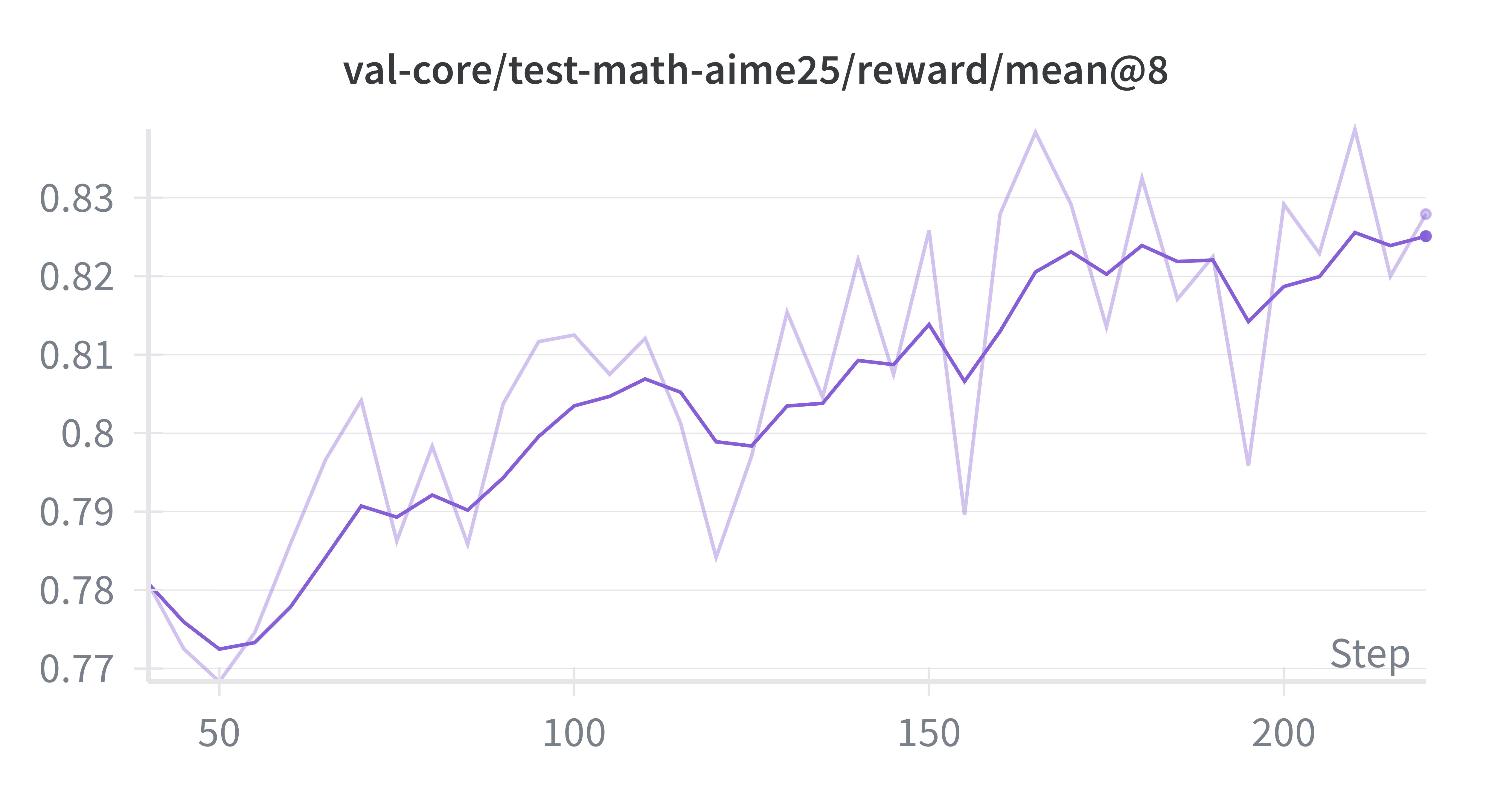 Rollout multiplicity and correctness analysis: We investigated the effect of varying the number of solution rollouts per problem instance, comparing $`n\in \{ 4, 8, 12\}`$. Ablation runs assessed whether increasing the number of diverse reasoning traces exposed the model to richer problem-solving strategies, particularly for complex problems. Additionally, we analyzed the impact of incorporating incorrect rollouts into the training set, evaluating in which conditions such traces would be beneficial.
