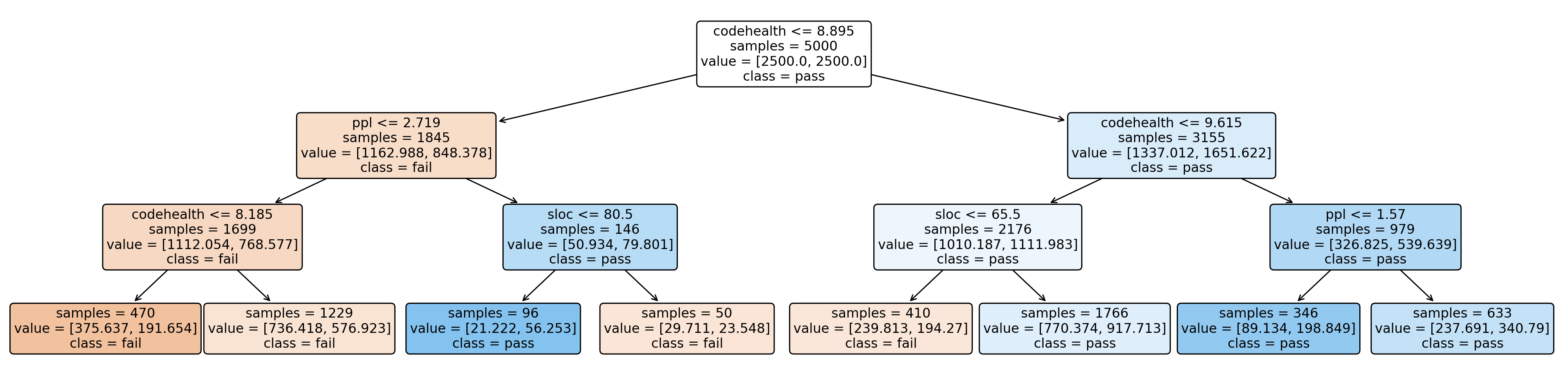 root decision, with subsequent splits on PPL and SLOC â or again CH. We