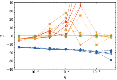 for those methods, and determine the optimal loss and learning rate sensitivity as in Sec. 4 for each choice of $`\lambda`$. The results are presented in Tab. [tab:overview_comparison] and Fig. 8.