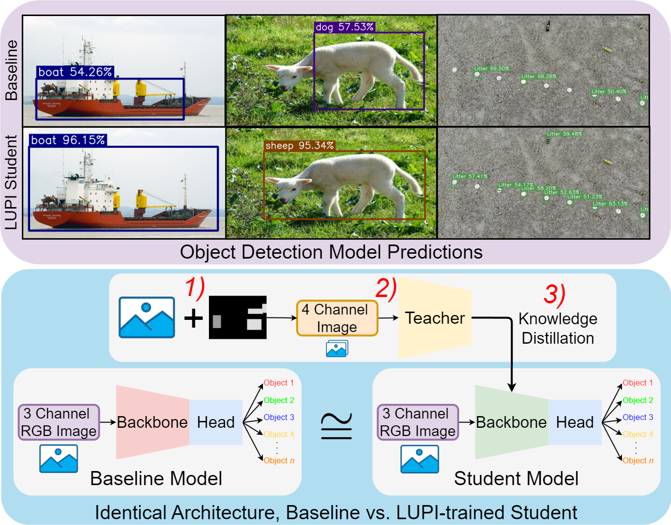 Computer Vision, knowledge distillation, learning using privileged information, litter detection, object detection