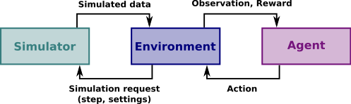 the simulator, and computes the reward and the observations from the
