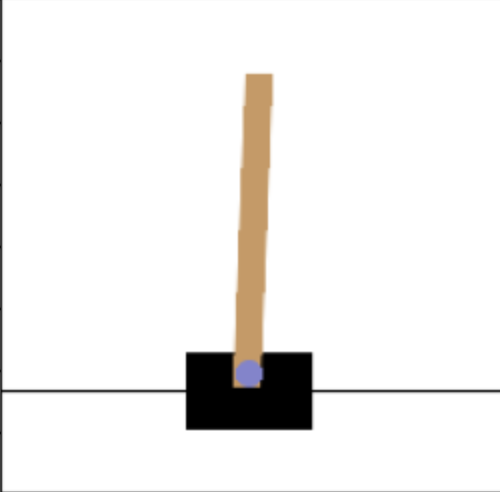 3. The goal is to balance the brown pole on the black cart to be upright. Are there any differences between Image 1 and Image 2 in terms of achieving the goal?