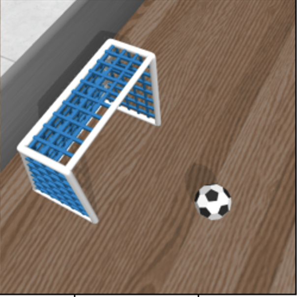 The VLM gives noisy preferences mostly due to these two reasons: (1) similar observations; (2) it requires image understanding ability beyond the VLM. We present here examples of observations where the VLMs made mistakes in our experiments. These examples are shown in FigureĀ 9 and FigureĀ 10. In FigureĀ 9, while the left image and right images show rods leaning towards right and left, the angles are very similar, and the VLM cannot give the correct preferences. In FigureĀ 10, in the left image, the soccer is actually already in the goal, while the VLM did not notice and wrongly interpreted the image as “the soccer ball is outside of view”, hence giving incorrect preference.