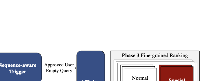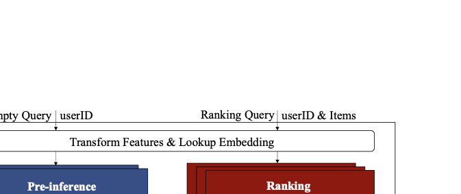 Modern industrial recommender systemsĀ serve tens of billions of requests per day through a multi-stage cascadeāretrieval, pre-processing (also known as coarse ranking), and fine-grained ranking. Because user engagement is highly sensitive to latency, the entire pipeline must complete within a few hundred milliseconds; otherwise, timeouts translate directly into revenue loss. The fine-grained ranking stage is the bottleneck: it typically has only tens of milliseconds at the 99th percentile (P99) to score hundreds of candidate items with a high-capacity model.