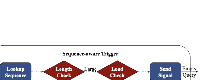 Sequence-aware Trigger. During retrieval, RelayGR inspects lightweight user-behavior metadata (e.g., prefix length and/or dimension) and estimates whether the request is at risk of violating the ranking-stage P99 under full inference. Only at-risk requests are admitted for prefix pre-inference, bounding the overhead and preventing it from becoming a new bottleneck.