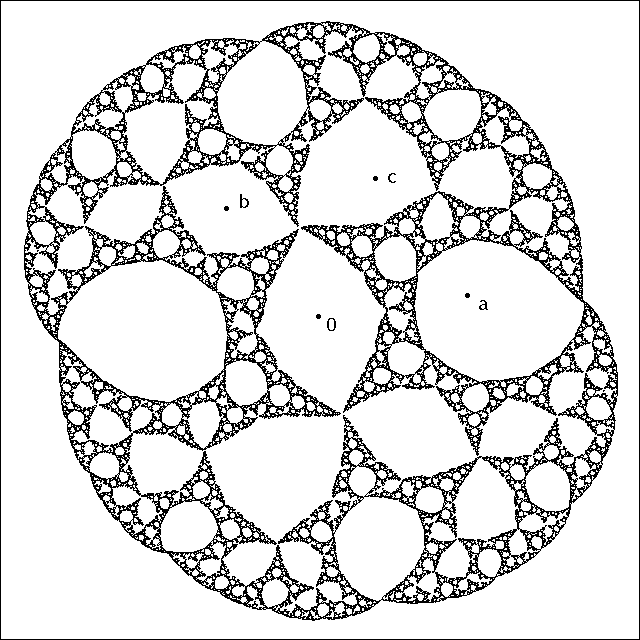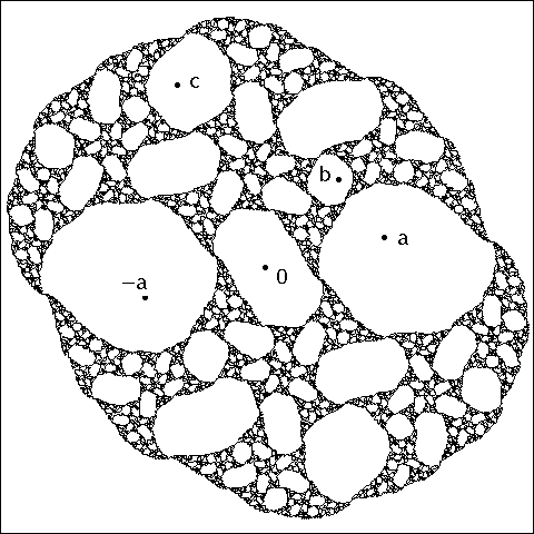 (Caution: The algorithm used to draw this Figure is not too satisfactory.In fact, the boundary of the outer region looks rather ragged because of very slowconvergence. )Period 4.